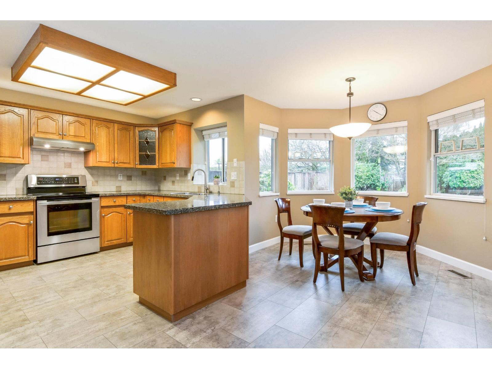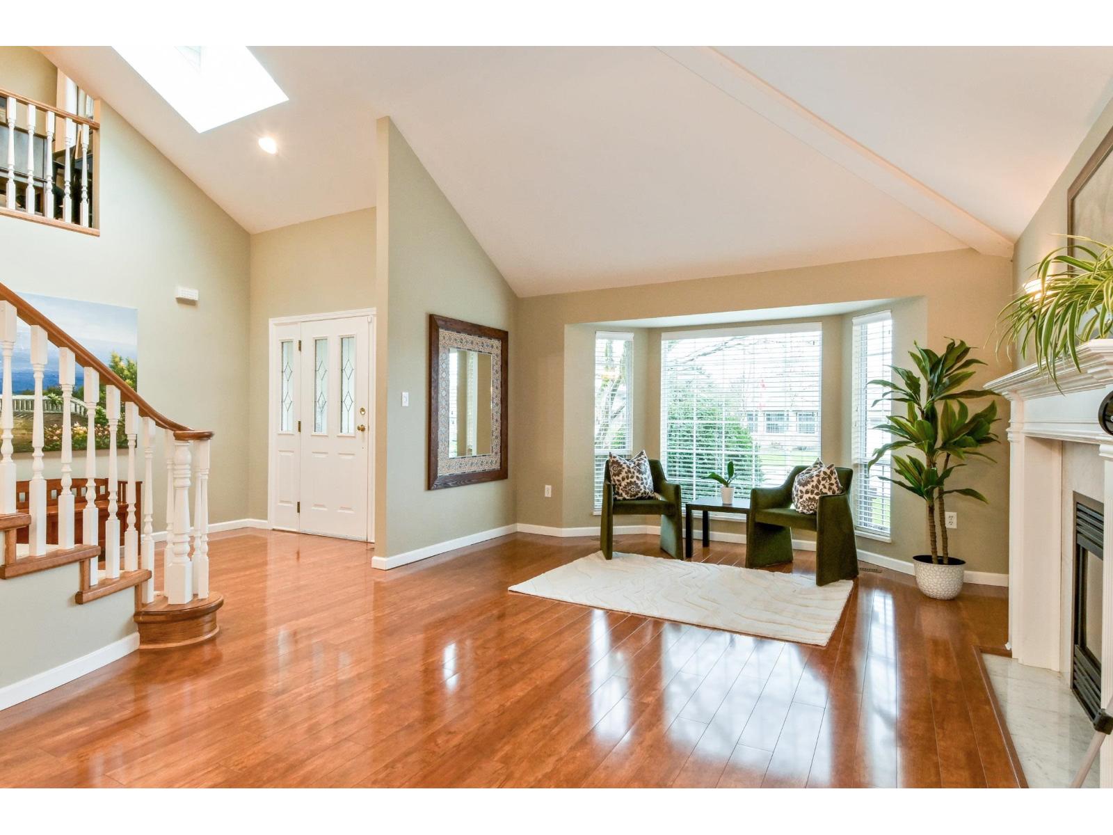 Immaculate custom built 2 storey, 4 bedroom and den home on a rectangular flat lot in Murrayville. Impressive entrance with circular staircase. Large windows and skylights make this home bright and light. Oak kitchen with quartz countertops, and stainless steel appliances opening onto a beautiful private landscaped lot. 1 bedroom is on the main - no stairs. 3 bedrooms up and primary bedroom has w/i closet and luxurious ensuite. Very quiet and safe neighbourhood. Hospital, schools, parks and rec centers nearby. (id:49203)