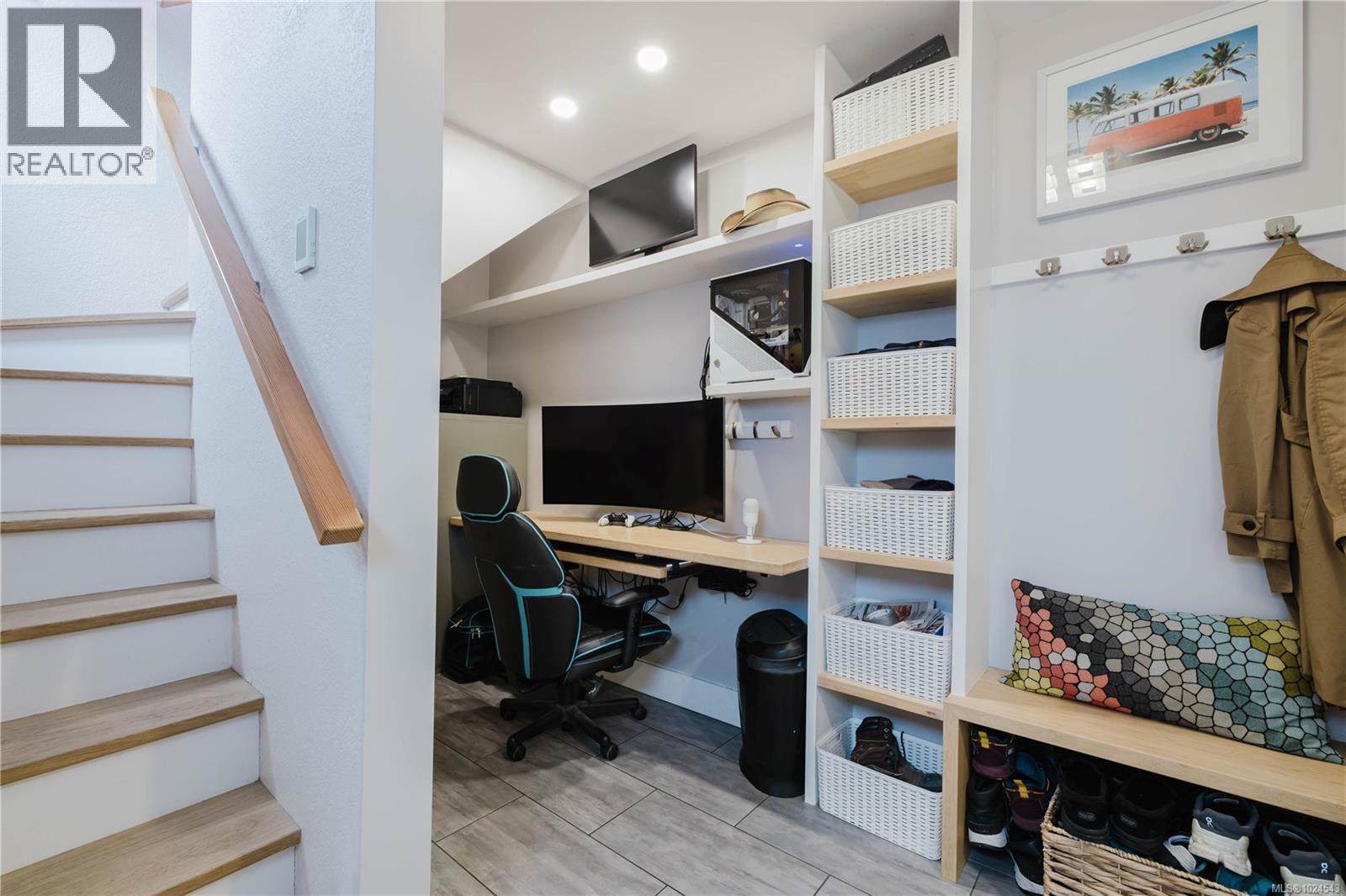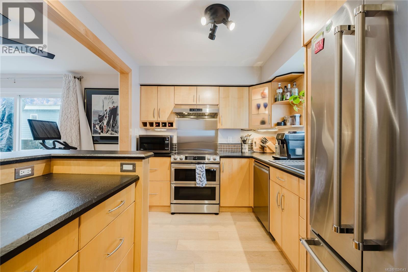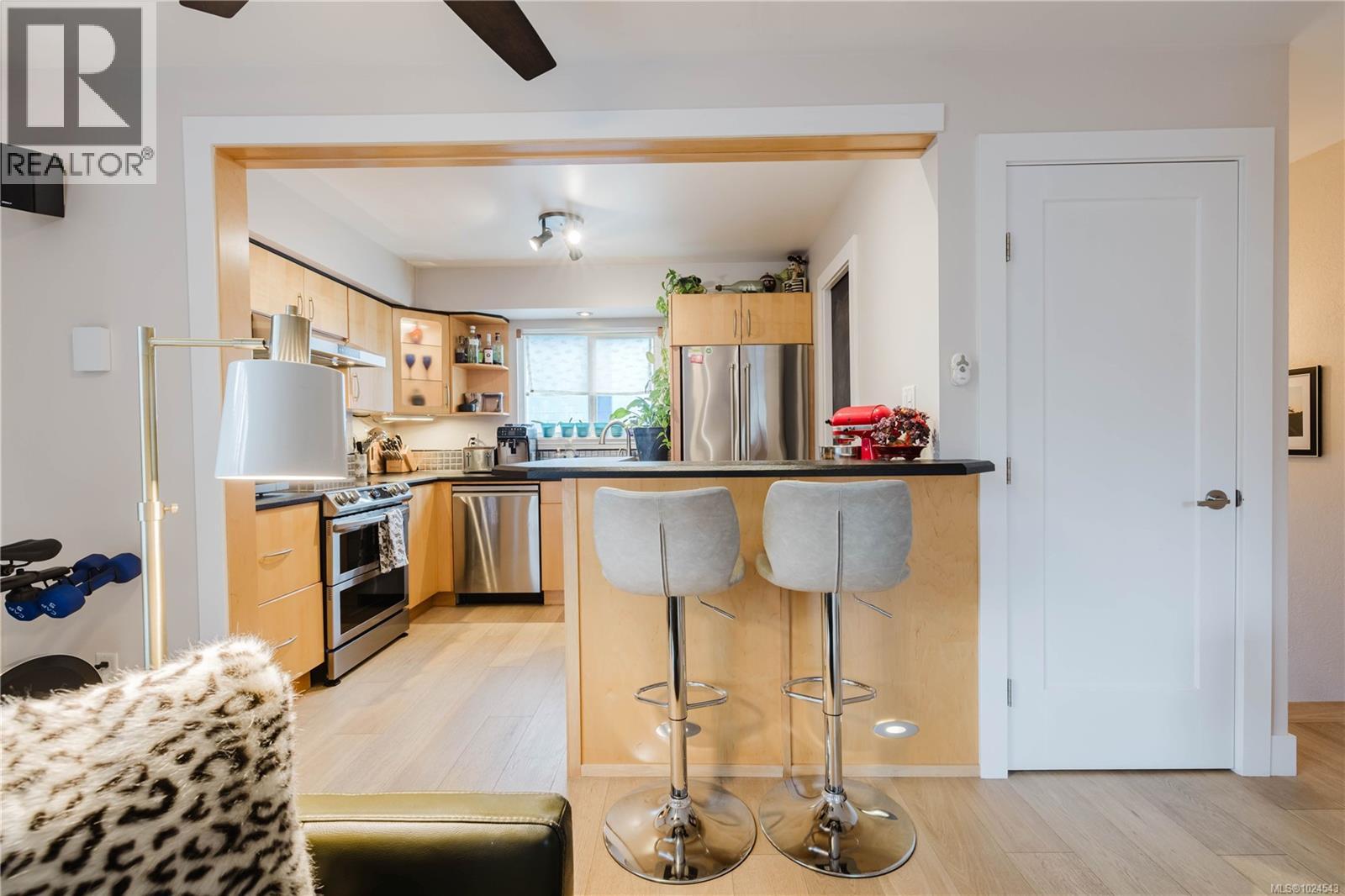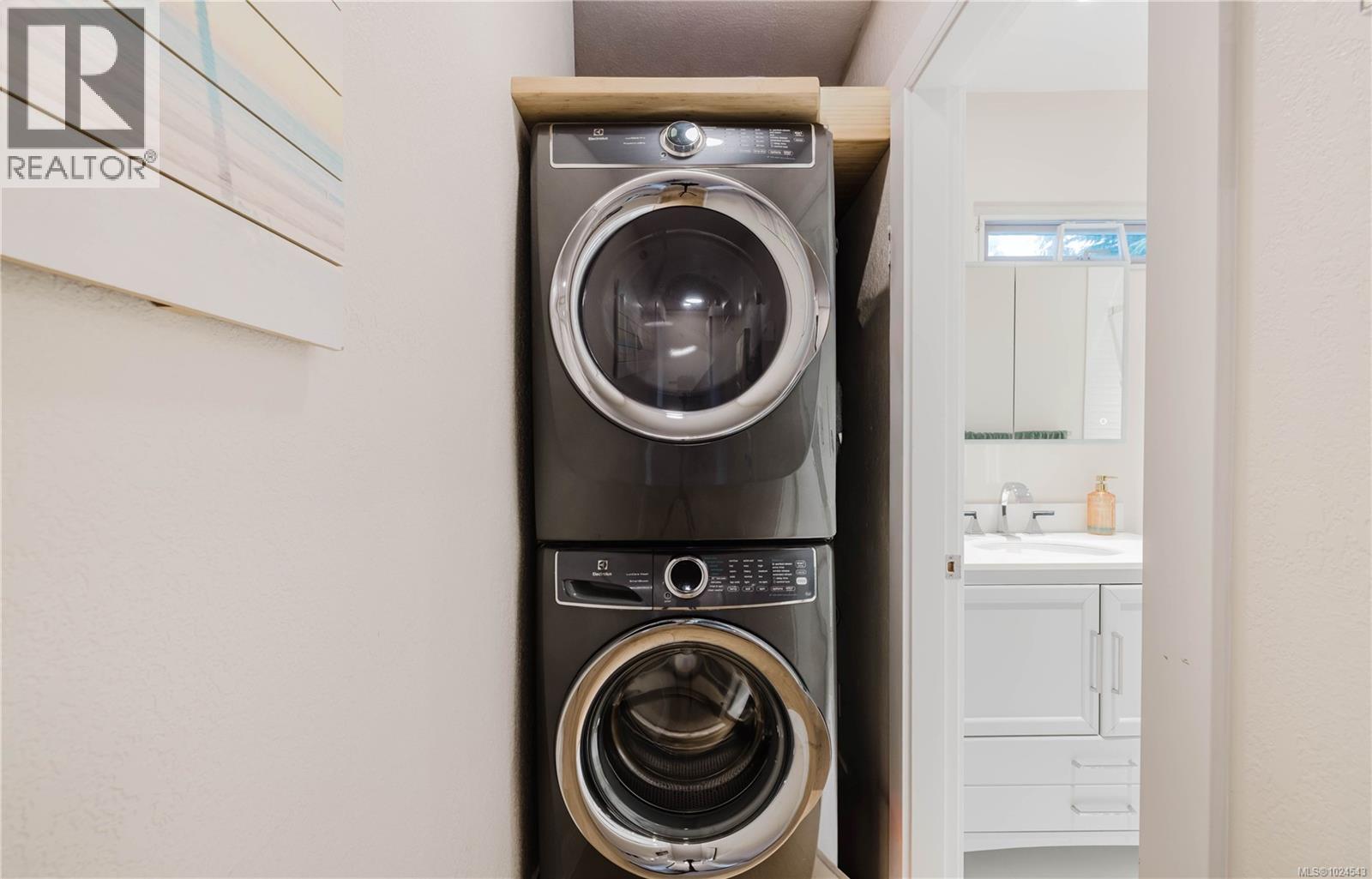 Welcome home to this extensively updated End-Unit townhome located 1 block from the ocean in Vic West. This home has been well maintained & the list of updates includes engineered hardwood floors throughout, updated bathrooms, recessed lighting, light fixtures & switches, doors, trim & baseboards, new heat pump, & fresh paint. The main floor features an open kitchen with stainless steel appliances & lots of cabinet space, & a spacious living room that leads to a SE facing balcony (perfect for entertaining). Upstairs you will find 2 spacious bedrooms, new laundry, & an updated 4-piece bathroom with heated tile floors. Downstairs is an updated 3-piece bathroom, a cute space for a home office, & a charming fenced in front courtyard. Located in Vic West, just 5 minutes to downtown, yet walking distance to Barnard Park, Westside Village & Songhees Walkway. Well-run strata with recently completed projects including new roof (2023), exterior paint (2022), and concrete walkways (2025). (id:49203)